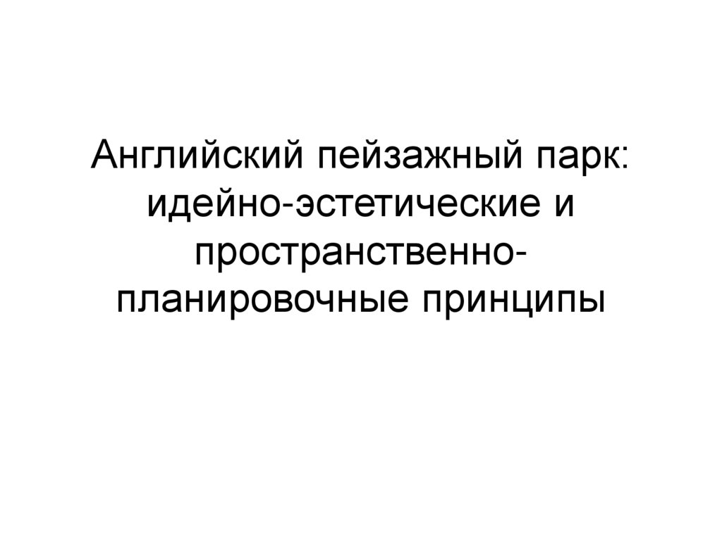 Английский пейзажный парк идейно-эстетические и пространственно-планировочные принципы