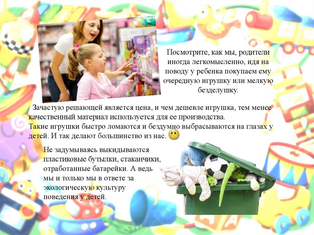 покупкой игрушки и ее возможном вреде для окружающей среды.