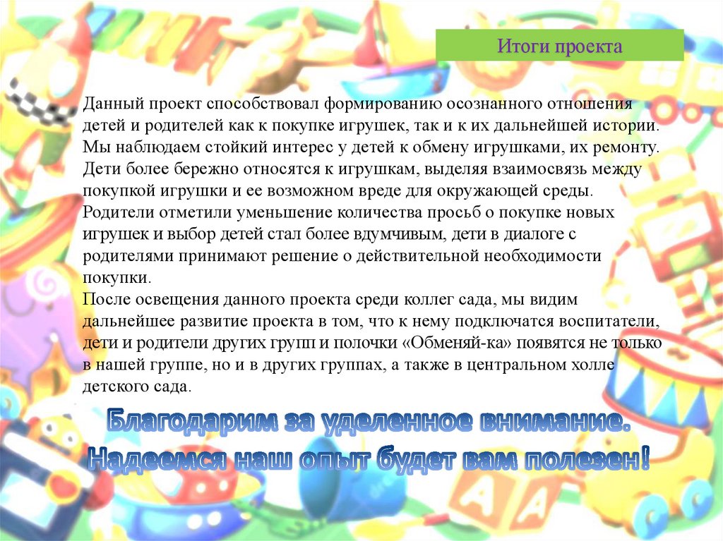 Итоги проектаДанный проект способствовал формированию осознанного отношения