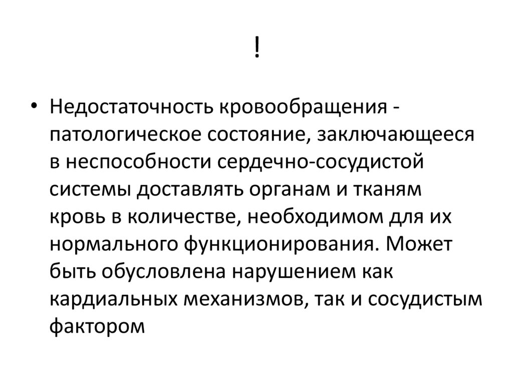 !• Недостаточность кровообращения патологическое состояние, заключающееся