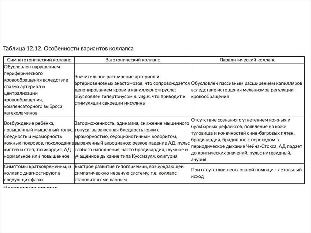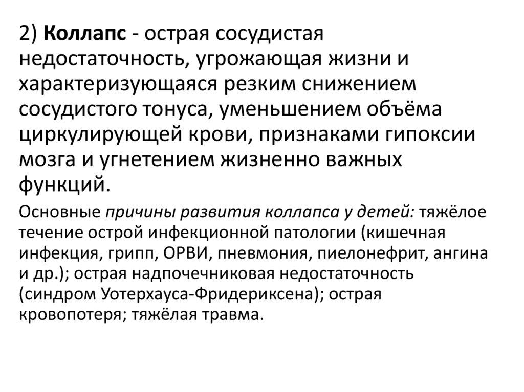 2) Коллапс - острая сосудистаянедостаточность, угрожающая жизни и