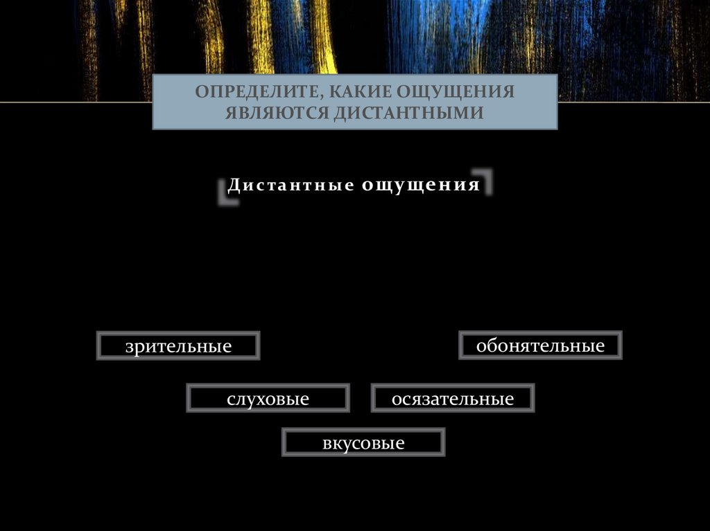 ОПРЕДЕЛИТЕ, КАКИЕ ОЩУЩЕНИЯЯВЛЯЮТСЯ ДИСТАНТНЫМИ