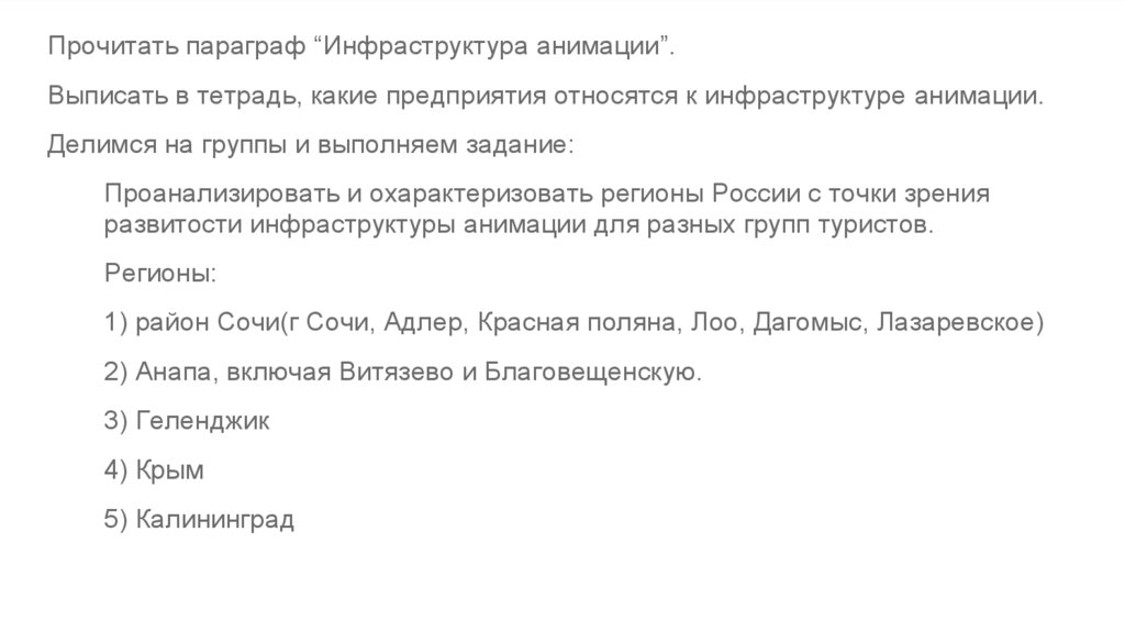 Прочитать параграф “Инфраструктура анимации”.Выписать в тетрадь, какие предприятия относятся к инфраструктуре анимации.
