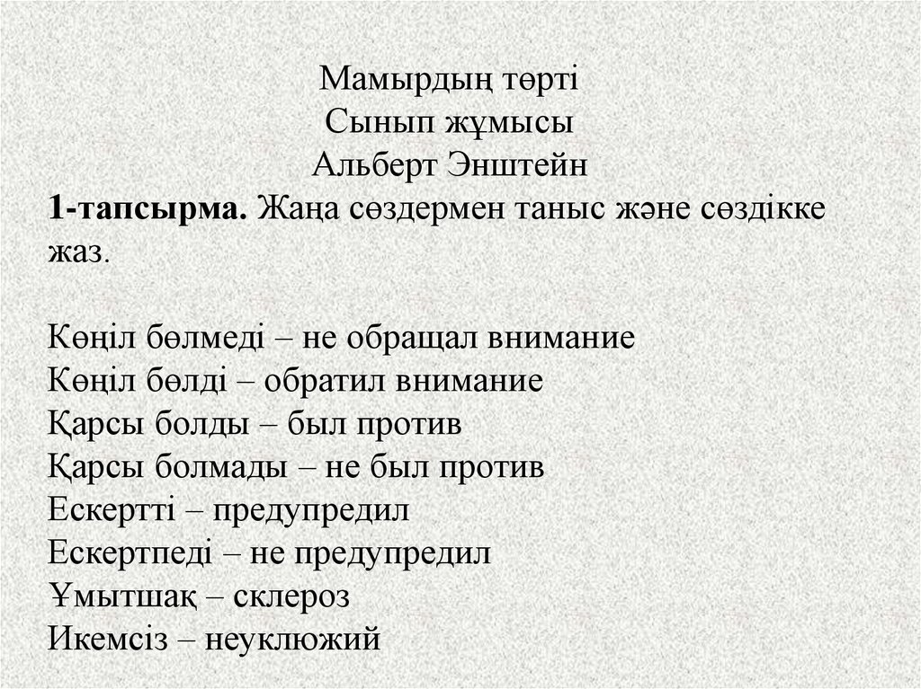 1-тапсырма. Жаңа сөздермен таныс және сөздікке