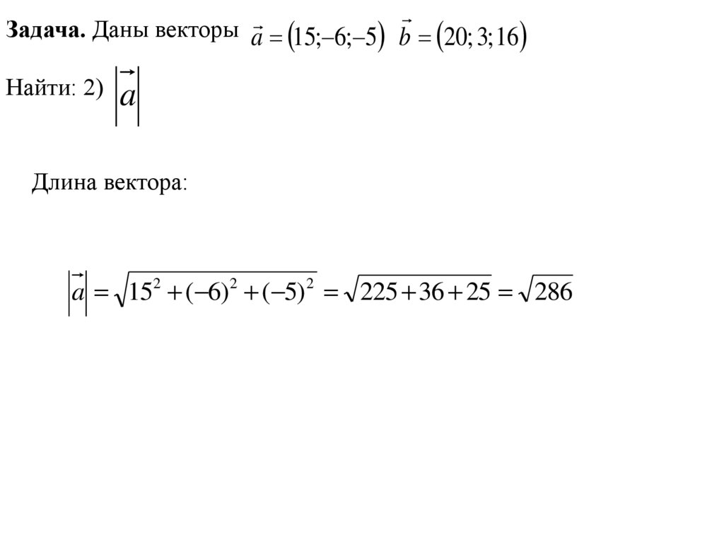 Задача. Даны векторы a 15; 6; 5 b 20; 3; 16Найти: 2)
