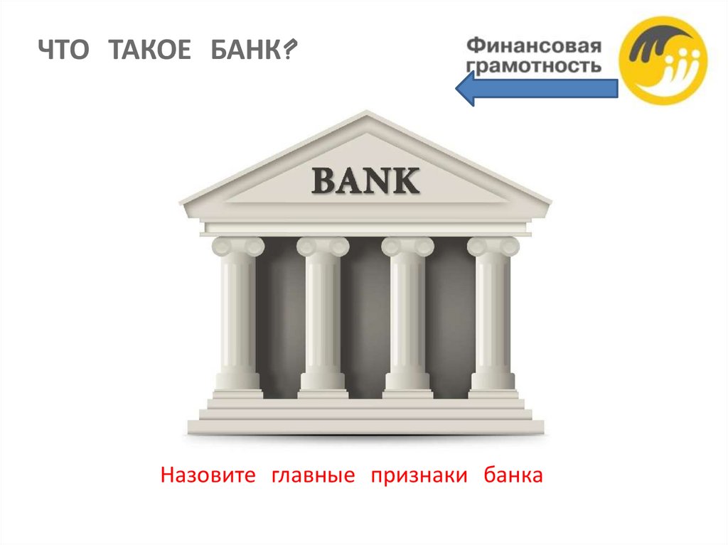 ЧТО ТАКОЕ БАНК?Назовите главные признаки банка