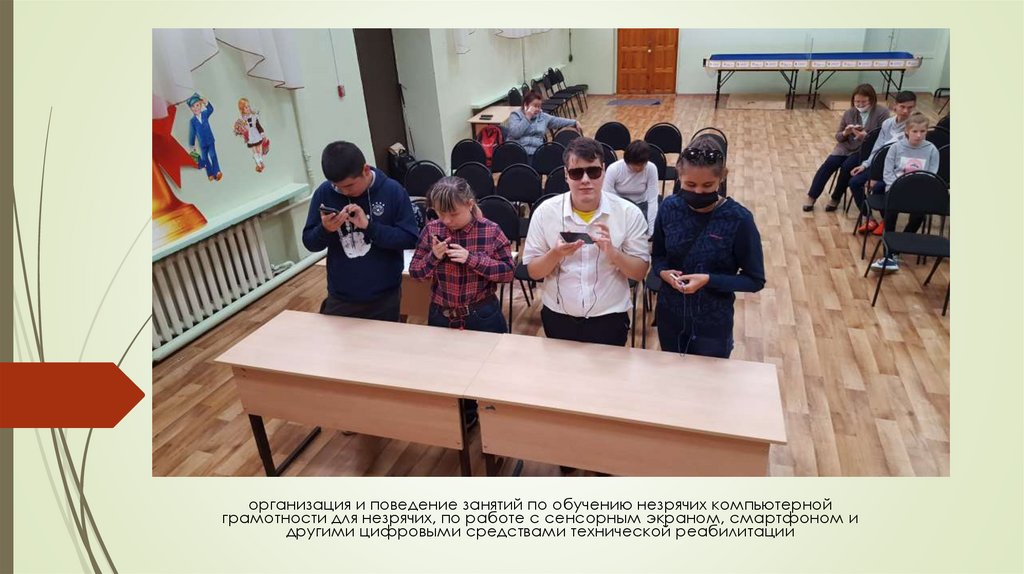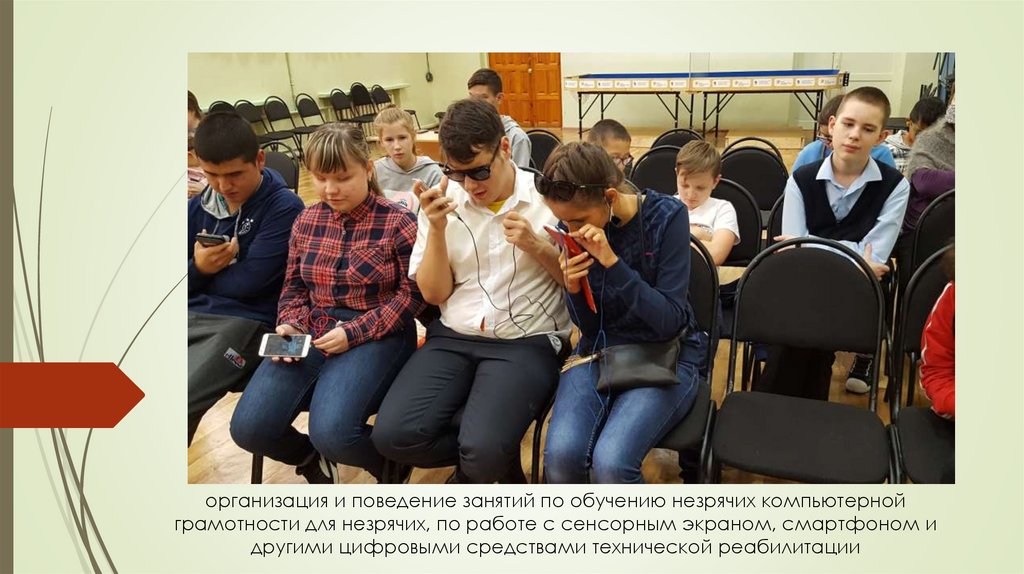 организация и поведение занятий по обучению незрячих компьютернойграмотности для незрячих, по работе с сенсорным экраном, смартфоном и