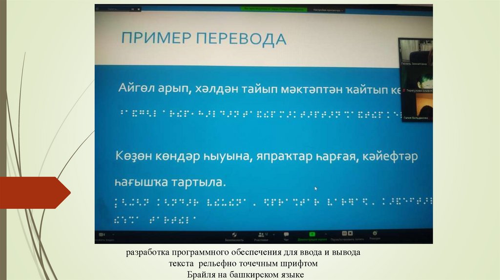 разработка программного обеспечения для ввода и вывода текстарельефно точечным шрифтом Брайля на башкирском языке