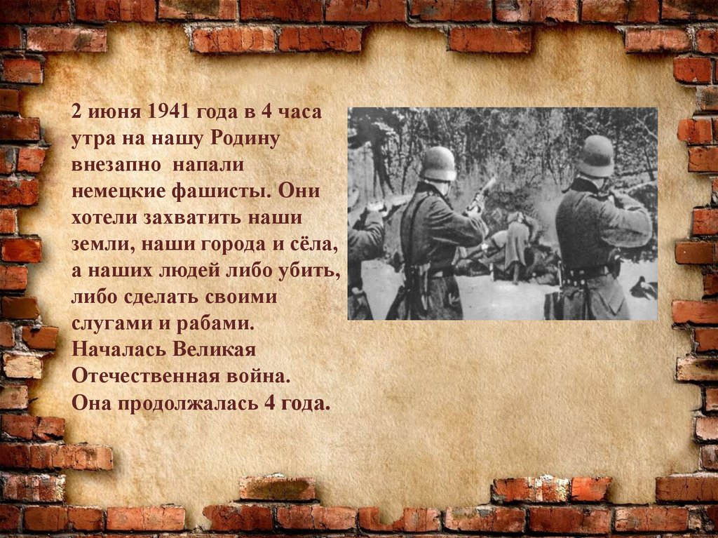 2 июня 1941 года в 4 часаутра на нашу Родину