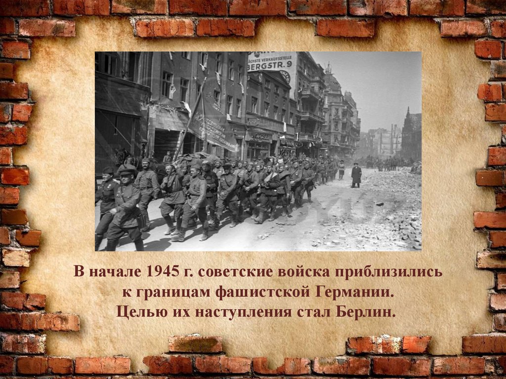 В начале 1945 г. советские войска приблизилиськ границам фашистской Германии.