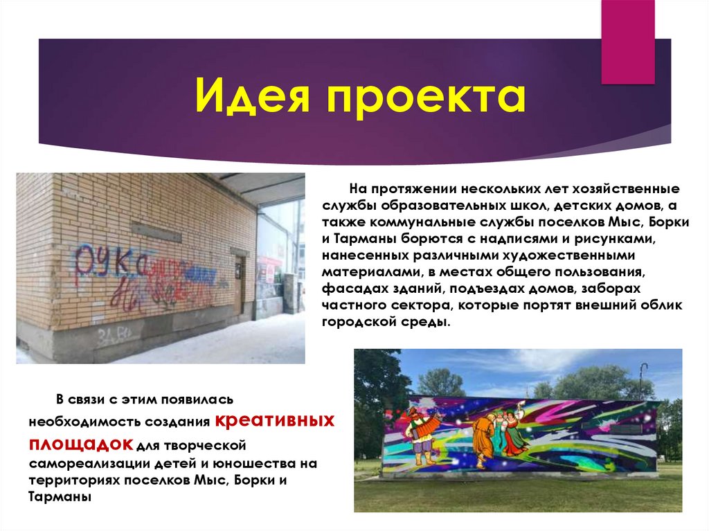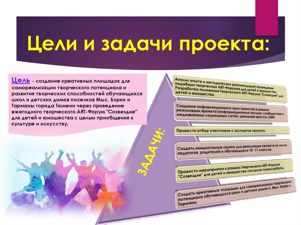 Цели и задачи проекта:Цель - создание креативных площадок для
