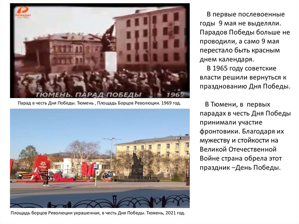 В первые послевоенныегоды 9 мая не выделяли.