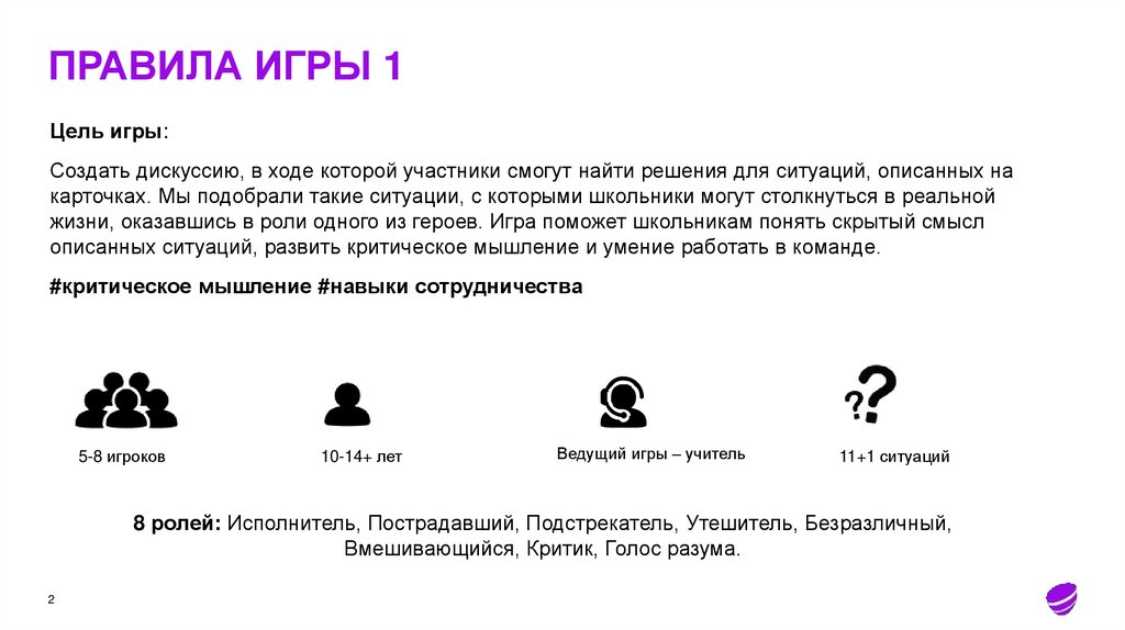ПРАВИЛА ИГРЫ 21. Перемешайте ролевые карточки и разделите их между игроками. Понятна ли роль?