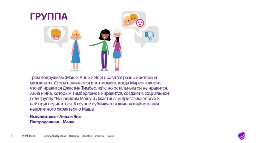 8 ролей: Исполнитель, Пострадавший, Подстрекатель, Утешитель, Безразличный,