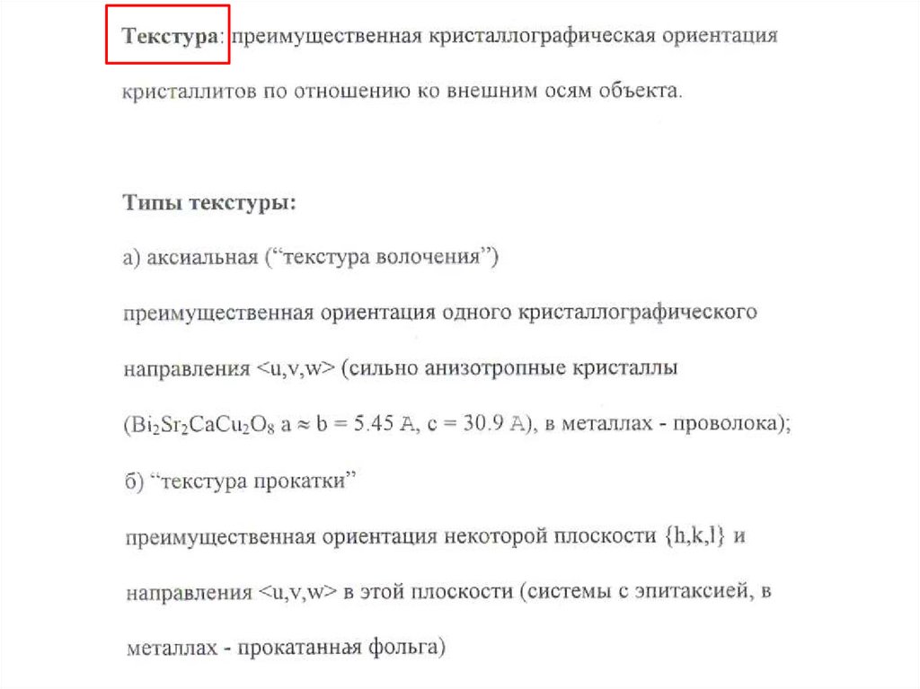 Текстура: преимущественная кристаллографическая ориентация кристаллитов по отношению ко внешним осям объекта