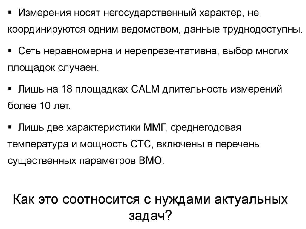 Измерения носят негосударственный характер, некоординируются одним ведомством, данные труднодоступны.