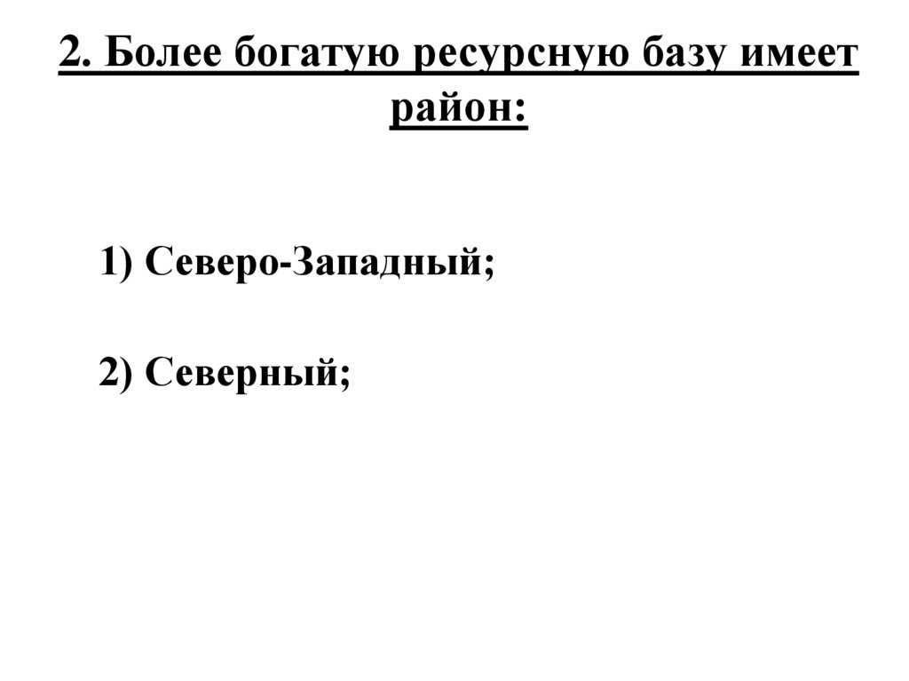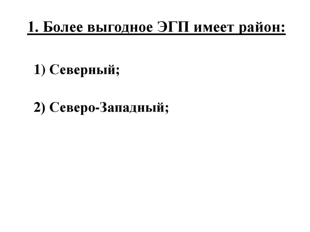 1. Более выгодное ЭГП имеет район:1) Северный;