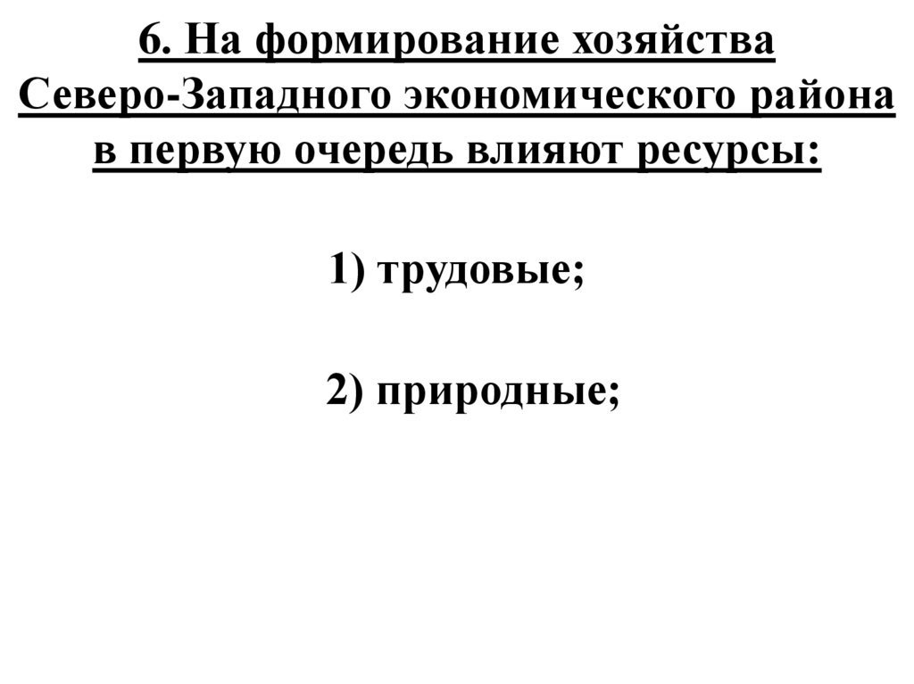 6. На формирование хозяйстваСеверо-Западного экономического района