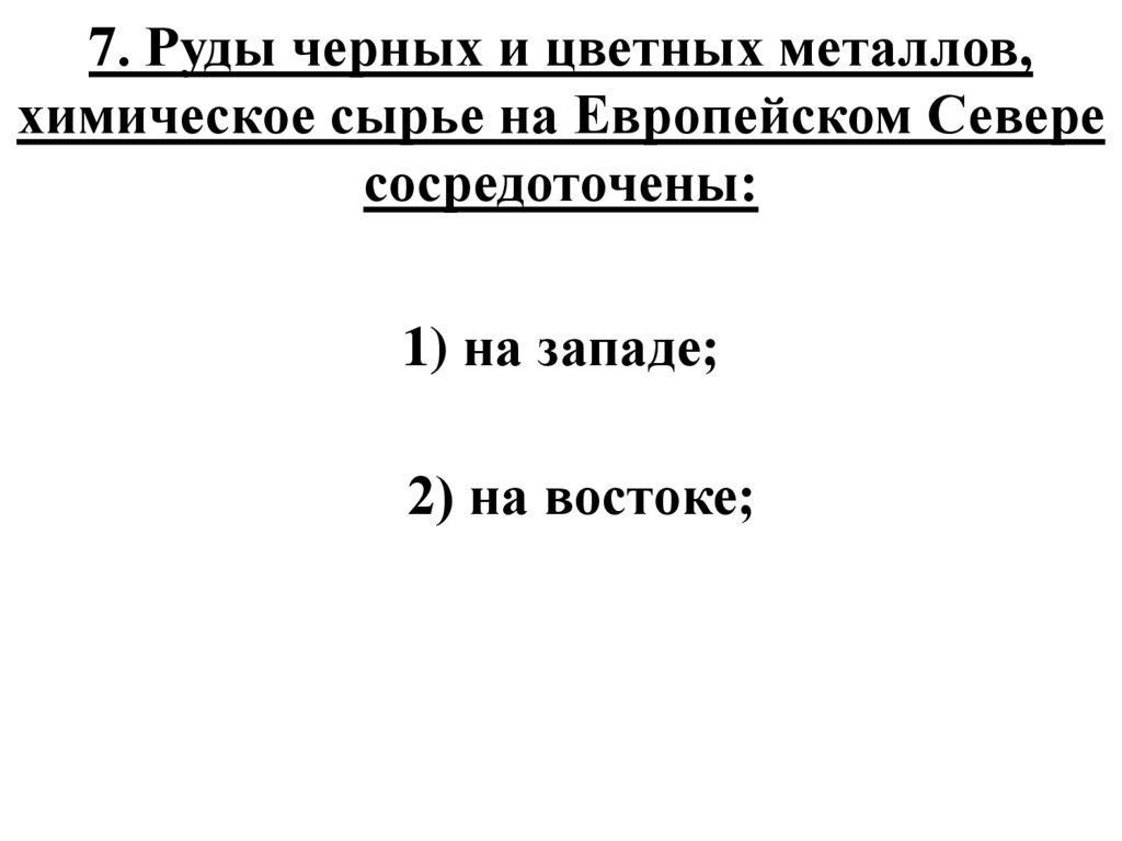 7. Руды черных и цветных металлов,химическое сырье на Европейском Севере