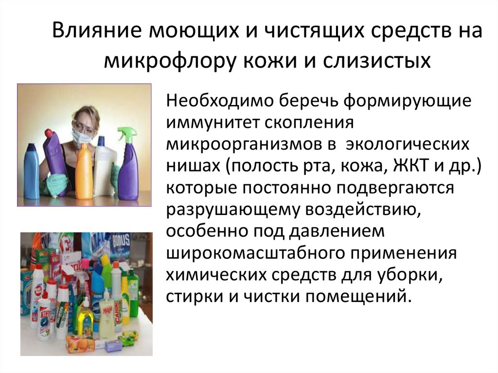Влияние моющих и чистящих средств намикрофлору кожи и слизистых