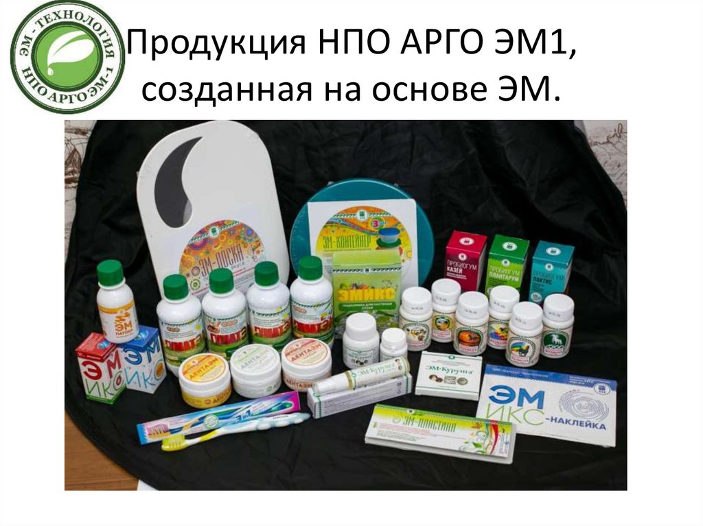 Продукция НПО АРГО ЭМ1,созданная на основе ЭМ.