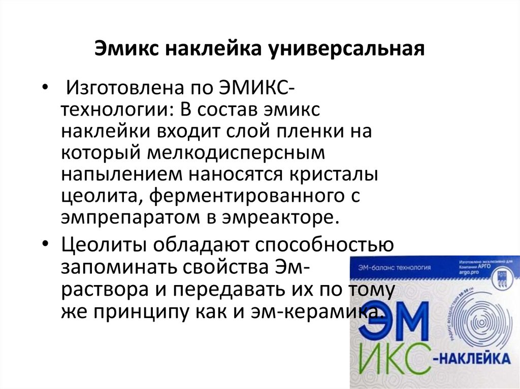 Эмикс наклейка универсальная• Изготовлена по ЭМИКСтехнологии: В состав эмикс