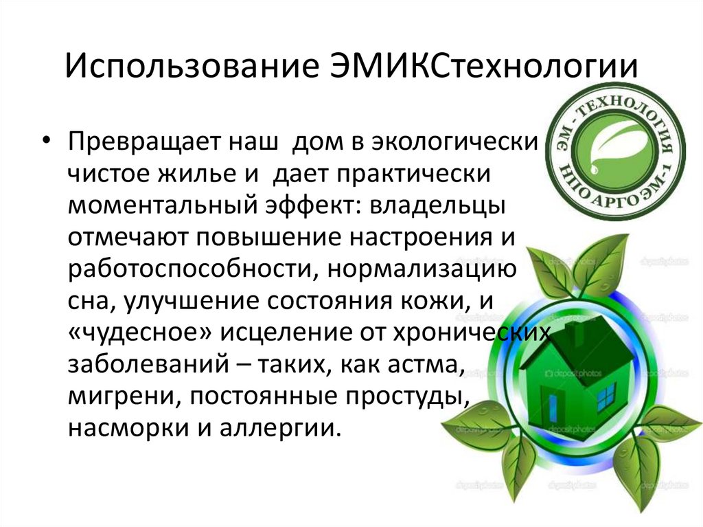 Использование ЭМИКСтехнологии• Превращает наш дом в экологически