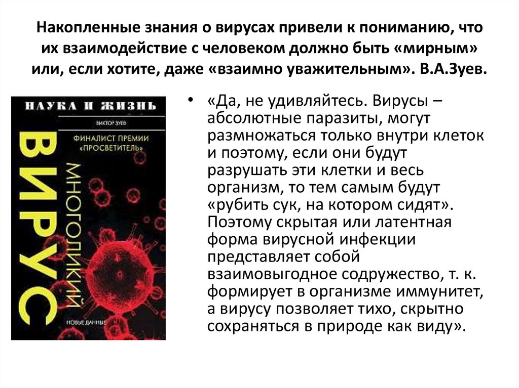Накопленные знания о вирусах привели к пониманию, чтоих взаимодействие с человеком должно быть «мирным»