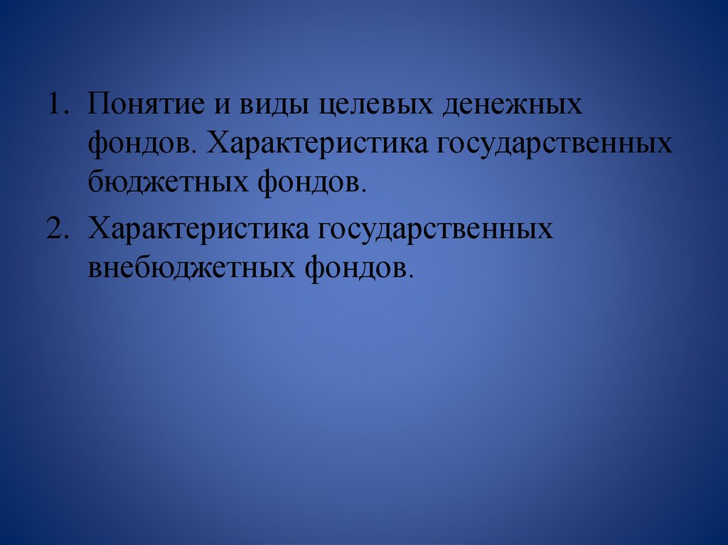 1. Понятие и виды целевых денежныхфондов. Характеристика государственных