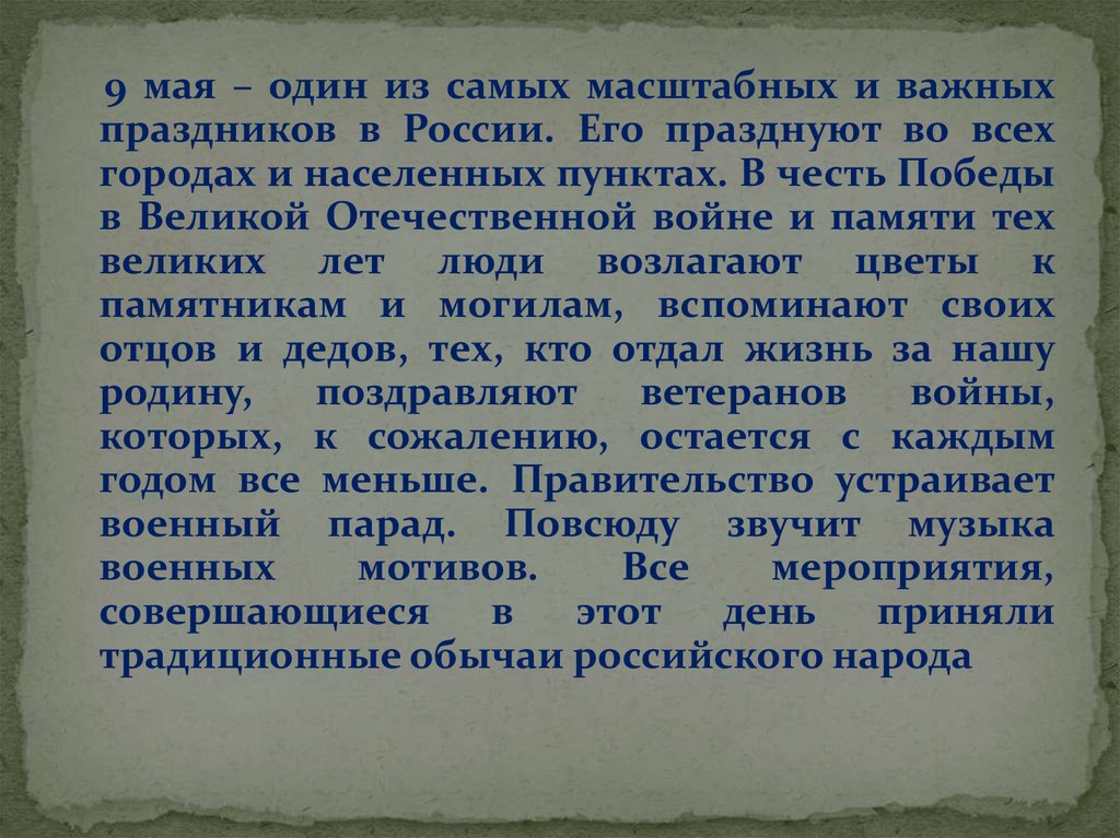 9 мая – один из самых масштабных и важныхпраздников в России. Его празднуют во всех