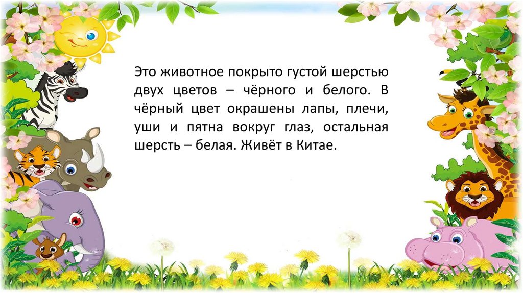 Это животное покрыто густой шерстьюдвух цветов – чёрного и белого. В