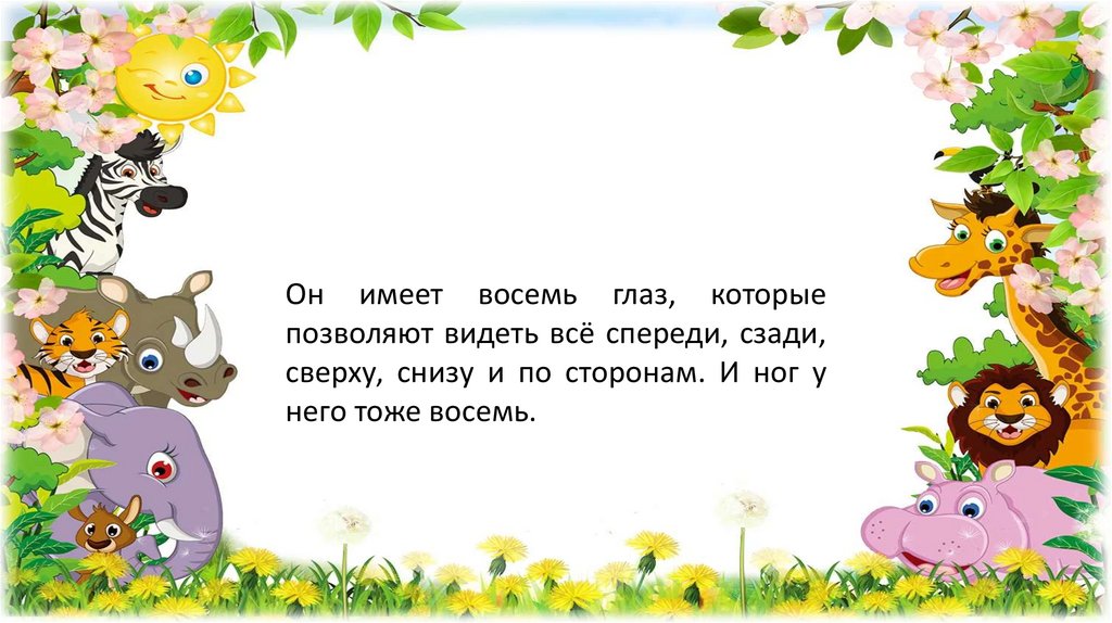 Он имеет восемь глаз, которыепозволяют видеть всё спереди, сзади,