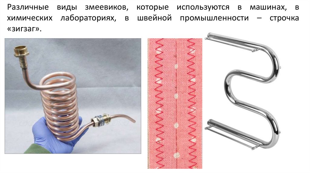 Различные виды змеевиков, которые используются в машинах, вхимических лабораториях, в швейной промышленности – строчка