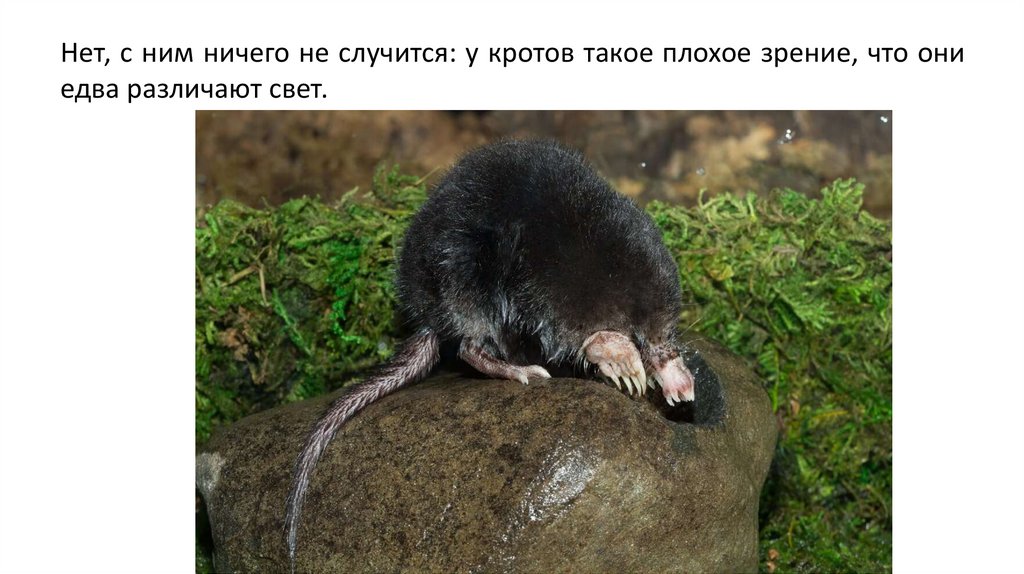 Нет, с ним ничего не случится: у кротов такое плохое зрение, что ониедва различают свет.