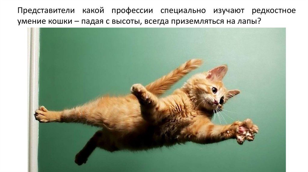 Представители какой профессии специально изучают редкостноеумение кошки – падая с высоты, всегда приземляться на лапы?