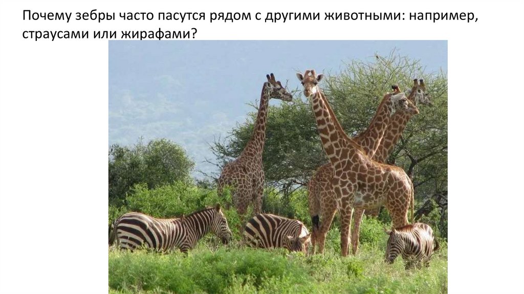 Почему зебры часто пасутся рядом с другими животными: например,страусами или жирафами?