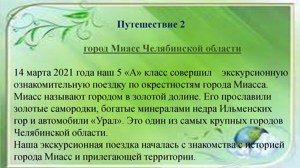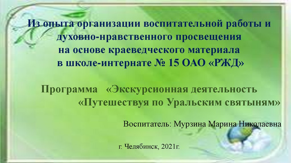 Экскурсионная деятельность «Путешествуя по Уральским святыням»