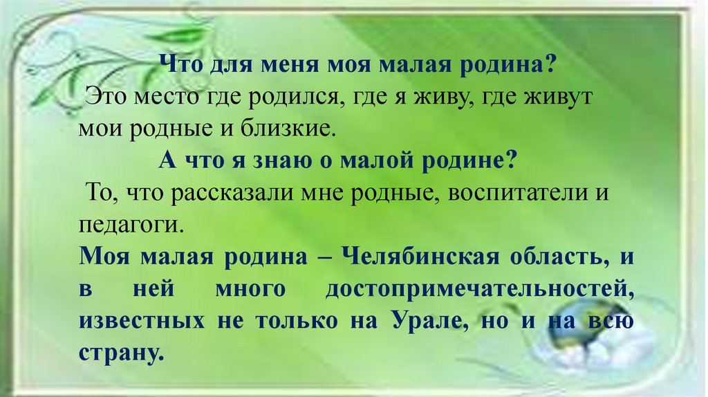 Что для меня моя малая родина?Это место где родился, где я живу, где живут