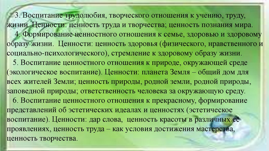 5. Воспитание ценностного отношения к природе, окружающей среде