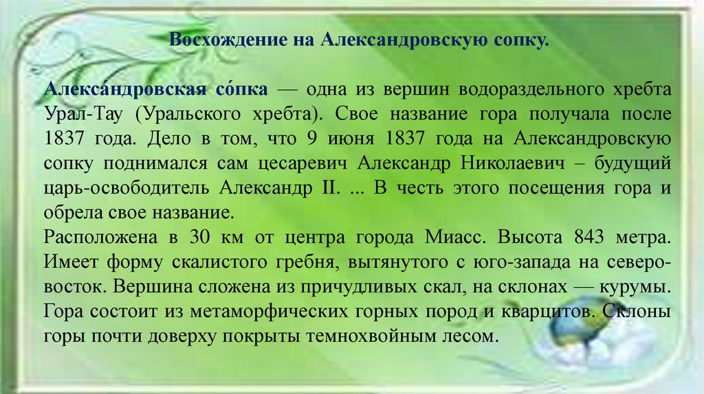 царь-освободитель Александр II. ... В честь этого посещения гора и
