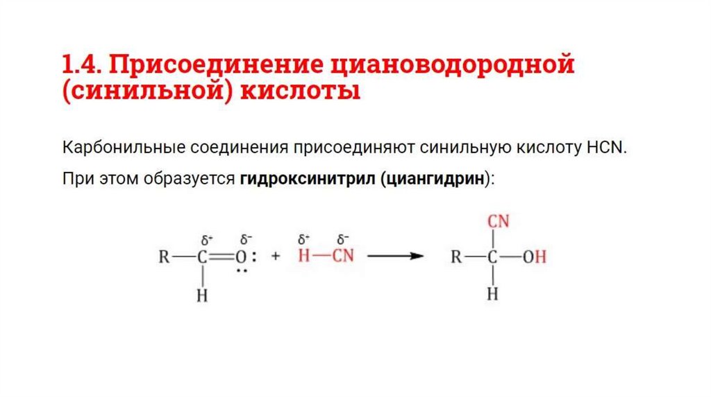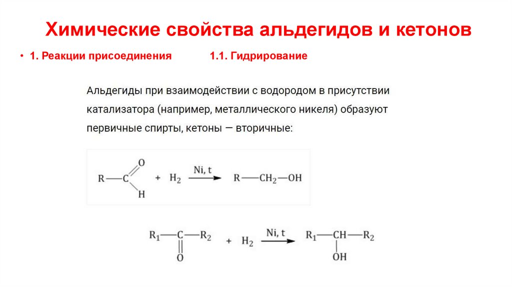 Химические свойства альдегидов и кетонов• 1. Реакции присоединения