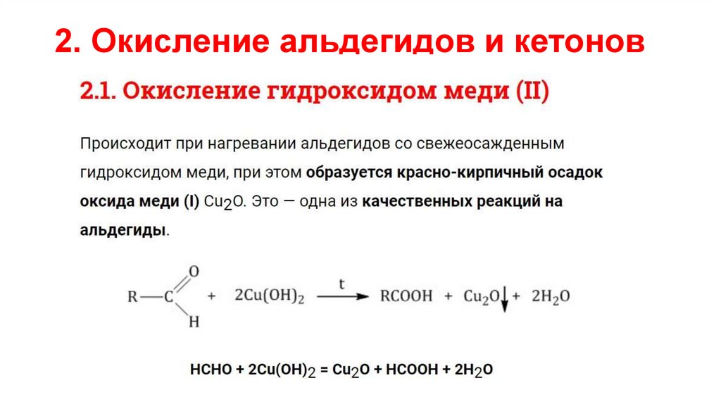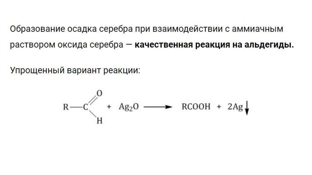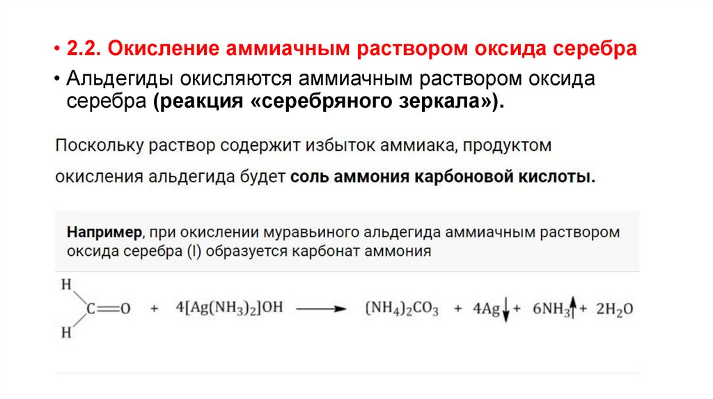 • 2.2. Окисление аммиачным раствором оксида серебра• Альдегиды окисляются аммиачным раствором оксида