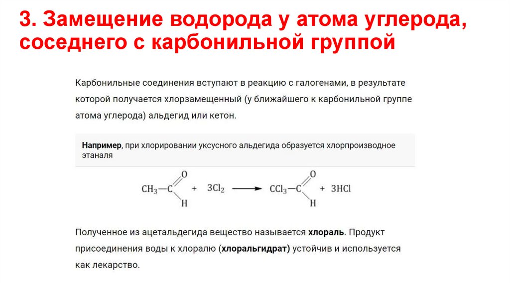 3. Замещение водорода у атома углерода,соседнего с карбонильной группой