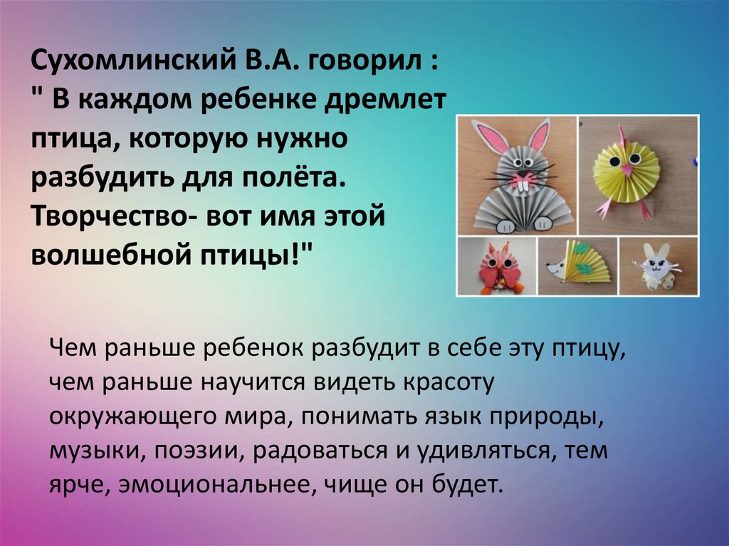 Сухомлинский В.А. говорил :" В каждом ребенке дремлет