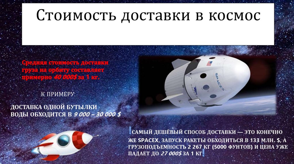 Стоимость доставки в космосК ПРИМЕРУ: