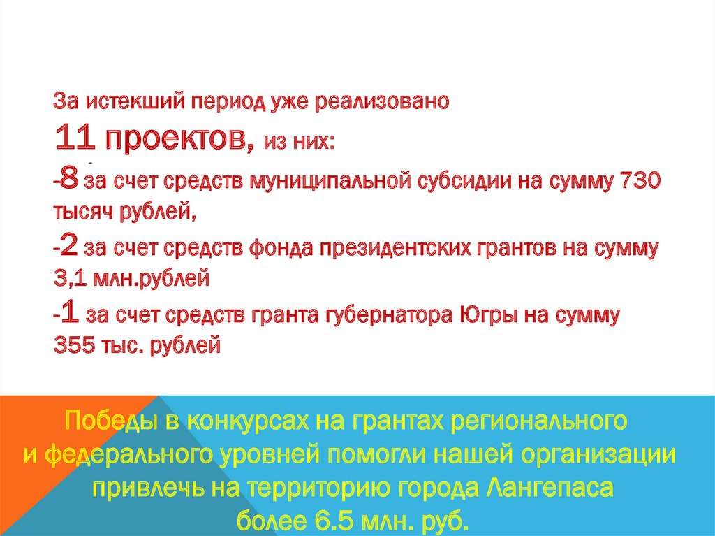 За истекший период уже реализовано11 проектов, из них: