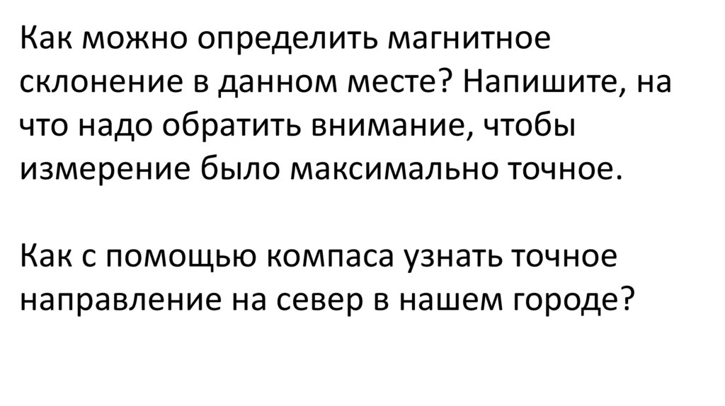 Как можно определить магнитноесклонение в данном месте? Напишите, на