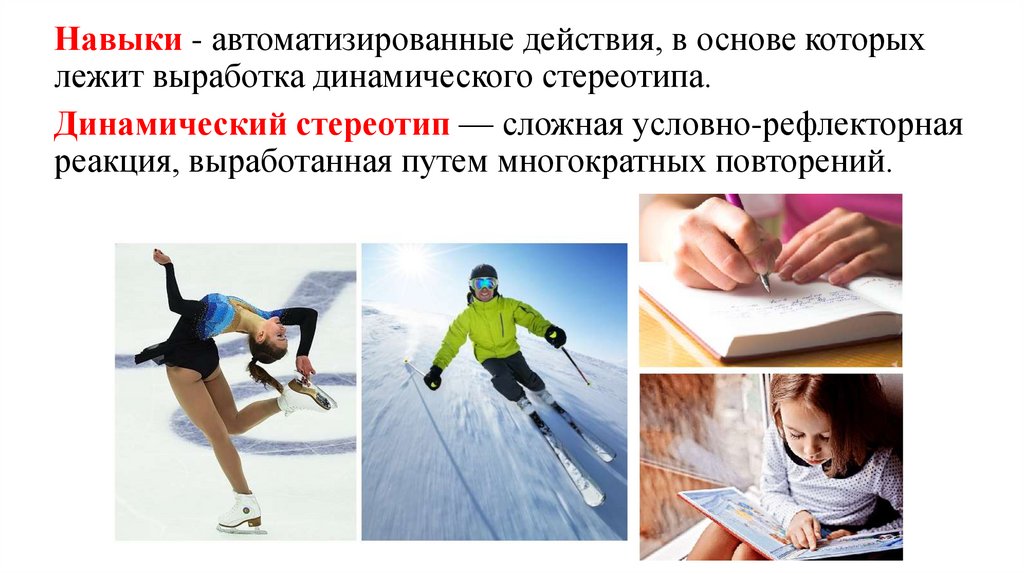 Навыки - автоматизированные действия, в основе которыхлежит выработка динамического стереотипа.