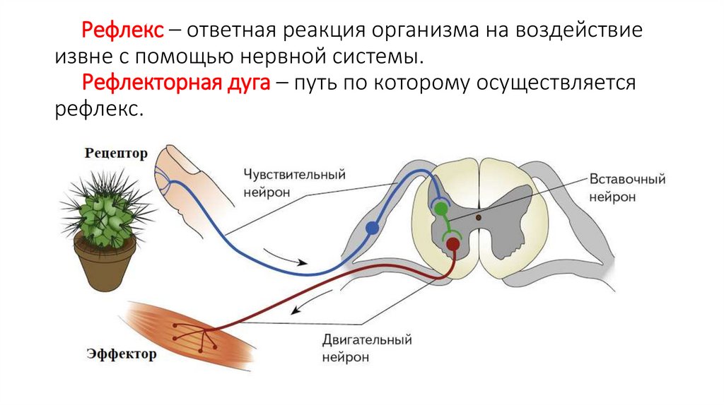 Рефлекс – ответная реакция организма на воздействиеизвне с помощью нервной системы.