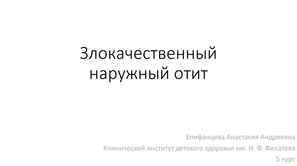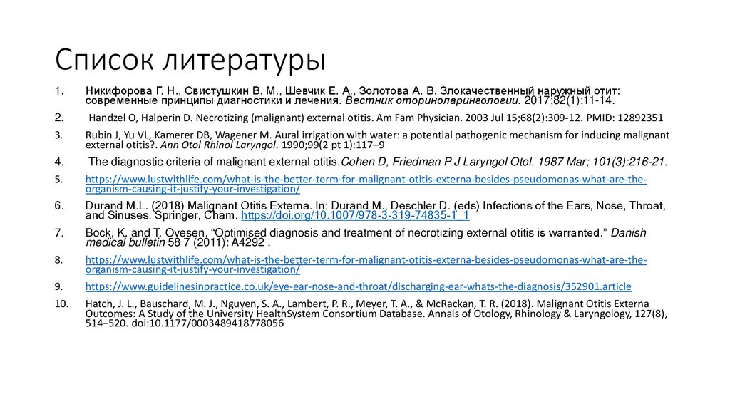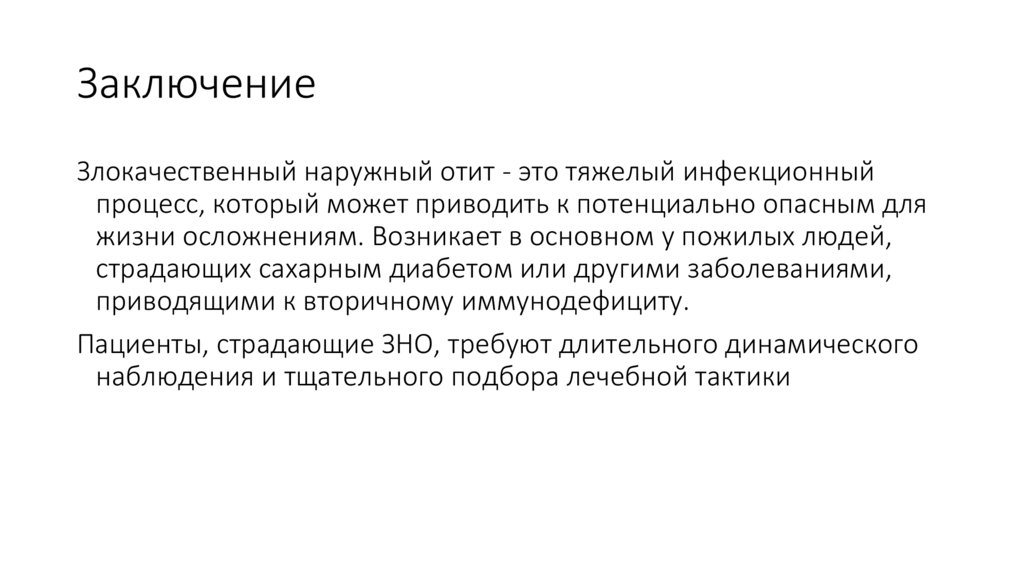 ЗаключениеЗлокачественный наружный отит - это тяжелый инфекционный